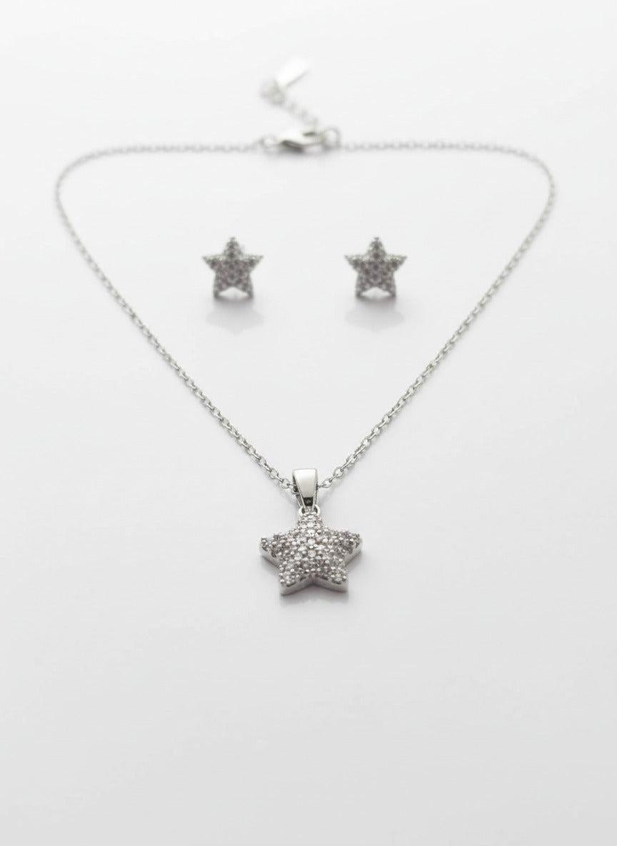 Silver Plated Star Pendant Necklace & Stud Earrings Set