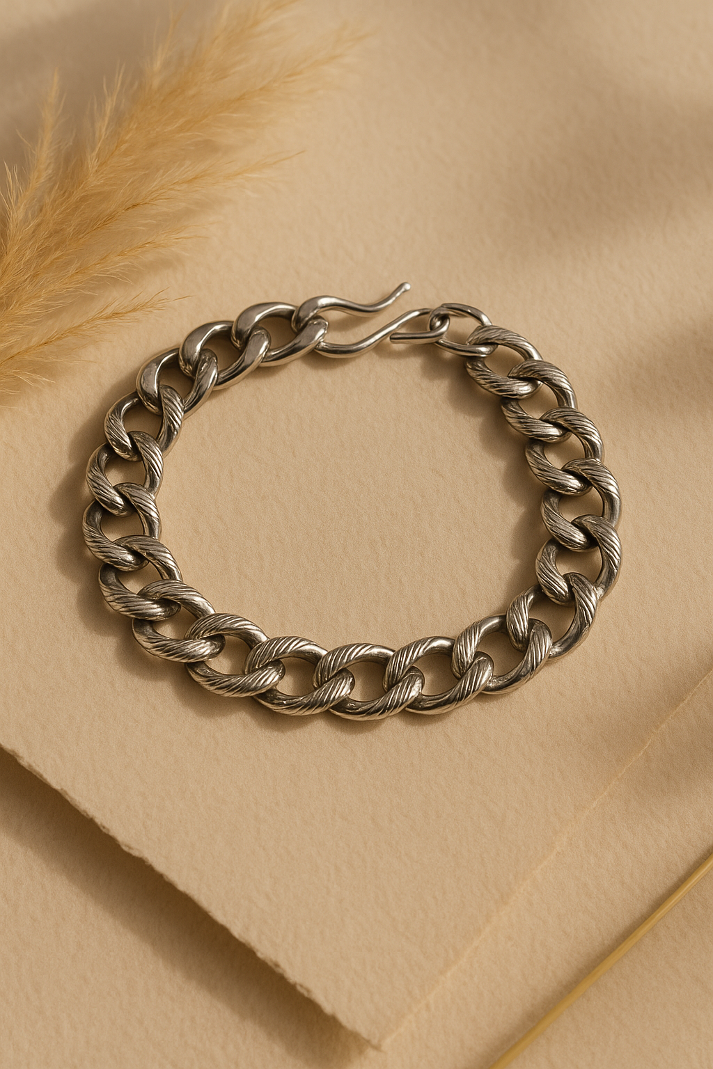 Shine bright with Jewelz Silver-Tone Textured Chain Bracelet — elegant, durable, and perfect for daily to festive wear.